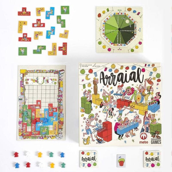 "Arraial" es el nombre que reciben las tradicionales celebraciones veraniegas portuguesas, durante las cuales la gente sale a la calle a comer, beber y divertirse en los barrios antiguos, adornados con arcos, globos de colores, música popular y el aroma de la albahaca. En Arraial, los jugadores intentan que la fiesta tradicional de su barrio sea la más popular atrayendo visitantes. ¡Consigue las decoraciones más bonitas, contrata a los artistas más inspirados, sirve las delicias más tradicionales, sal a la calle y organiza la fiesta del año!