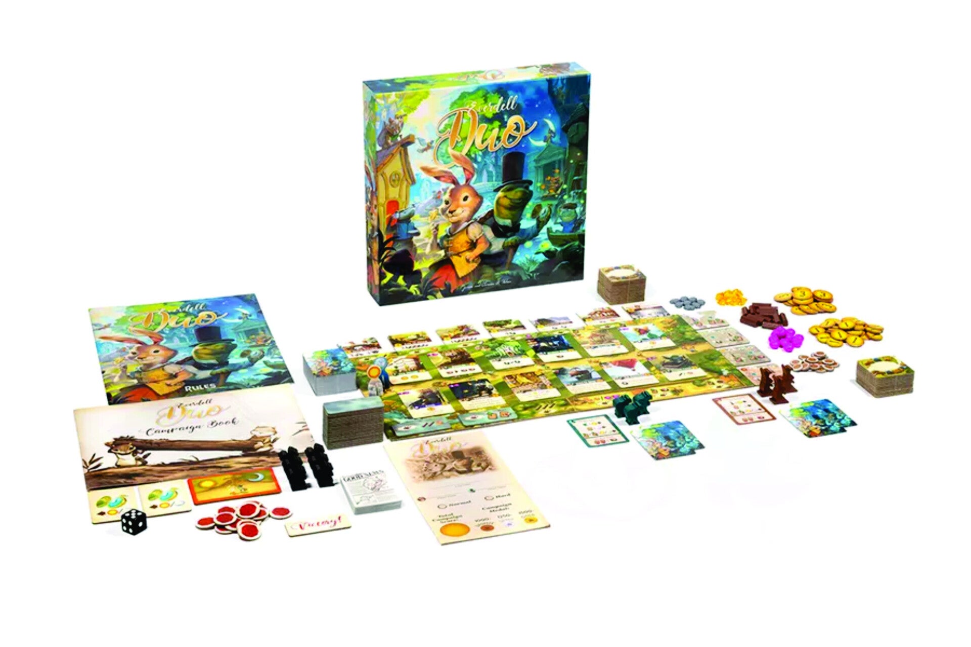 Gobierna sabiamente tu ciudad boscosa para asegurarte de que tus ciudadanos de criatura estén alegres, los edificios estén correctamente construidos, y se llevan a cabo muchos eventos para celebrar tus triunfos Este juego no empotrado en el encantador mundo de Everdell está hecho especialmente para dos jugadores. Ofrece una jugabilidad competitiva cara a cara y también una campaña cooperativa robusta y emocionante. Con una innovadora estructura de giro, más de 75 habilidades únicas de cartas y más de 30 eventos diferentes para lograr, Everdell Duo es una experiencia expansiva y adictiva con fácil configuración y tiempo de juego rápido.