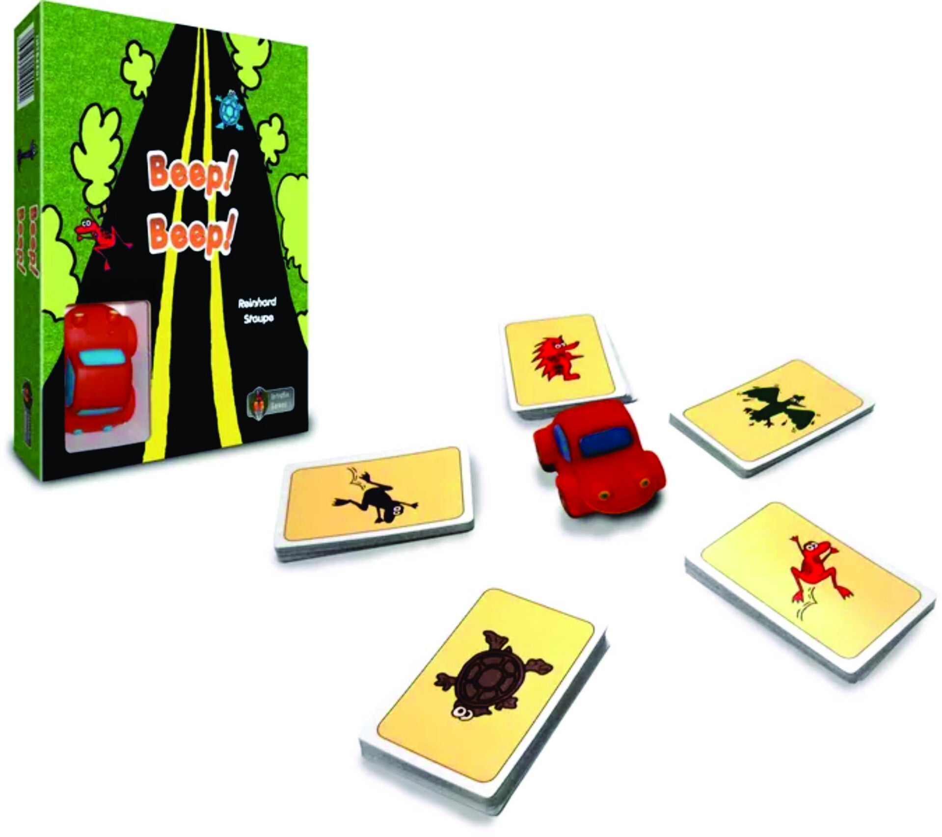 El juego consiste en un pequeño coche de goma que rechina y 112 cartas, cada una con un animal de un color específico. Los jugadores intentan emparejar simultáneamente el animal o el color con los que ya han evitado. Cuando aparezcan tres animales del mismo color o color a la vez, toca el coche que rechina para que ¡Bip! ¡Bip! toques la bocina y los apartes.